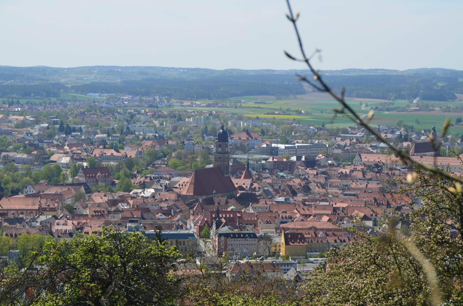 Direkt vor der Kirche am Mariahilfberg hast du den schönsten Panoramablick über Amberg – besonders zum Sonnenuntergang.