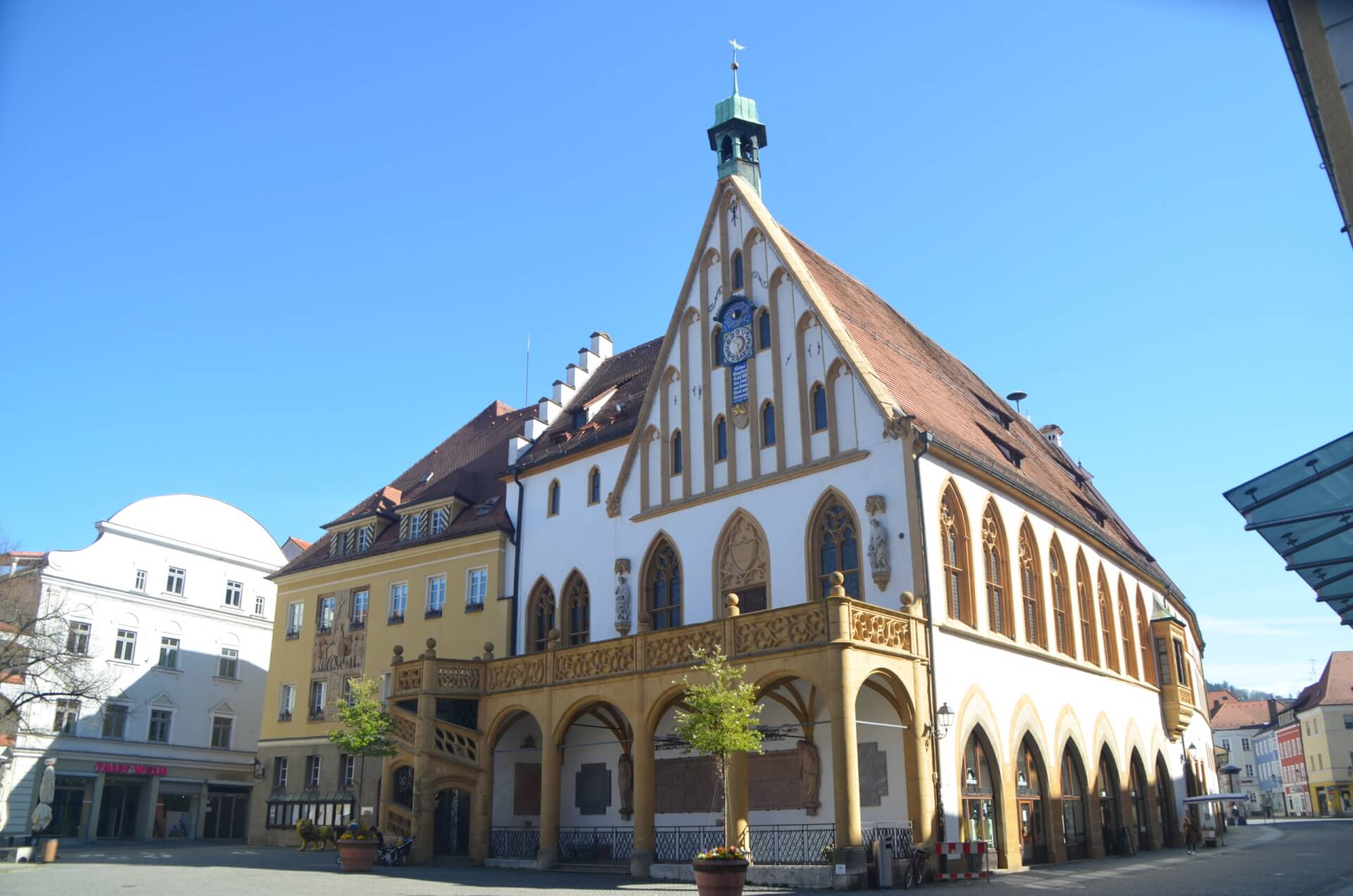 Stell dich an den Rand des Marktplatzes und richte den Blick auf das Rathaus – so fängst du die historische Kulisse besonders stimmungsvoll ein.