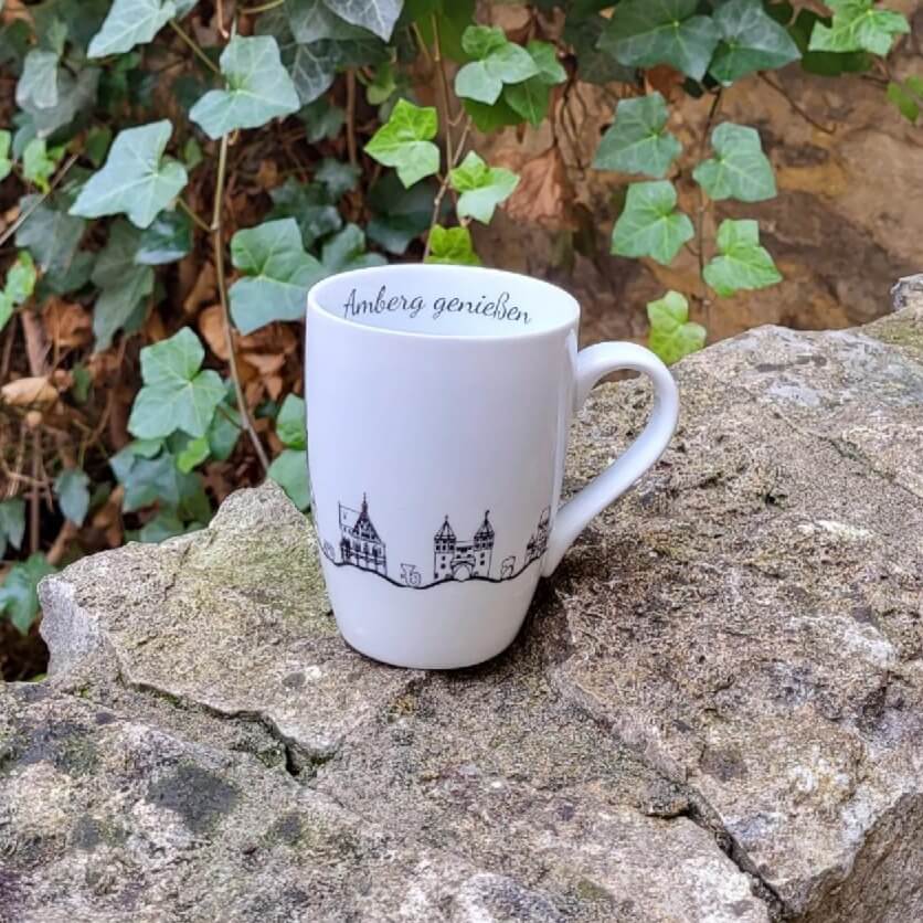 Diese Tasse hat die perfekte Größe um einen Tee oder eine leckere heiße Schokolade zu genießen und von einem Besuch in Amberg zu träumen.